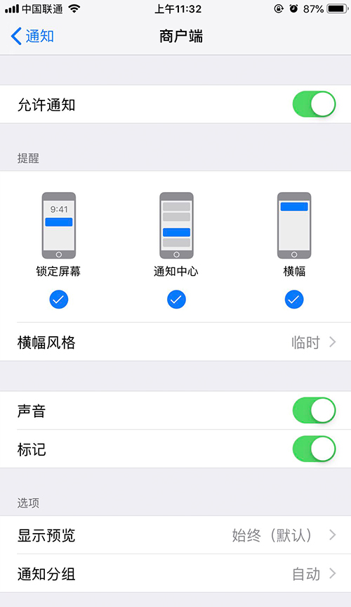 5、已經處于開啟狀態,在鎖定屏幕,通知中心,橫幅都會顯示通知的信息